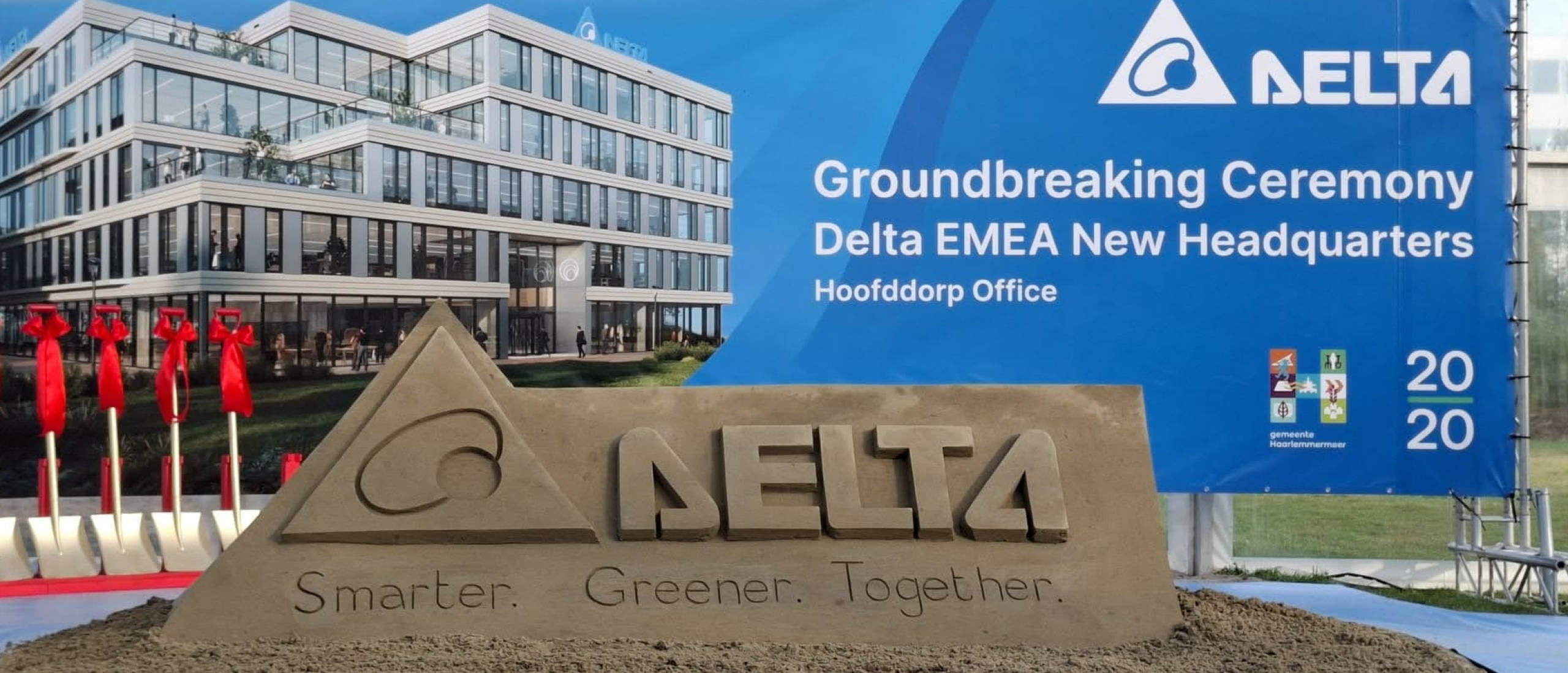 Wat een eer om het startsein van de bouw van het nieuwe pand van Delta te vieren – en hoe beter dan met een reusachtig logo uit zand?
